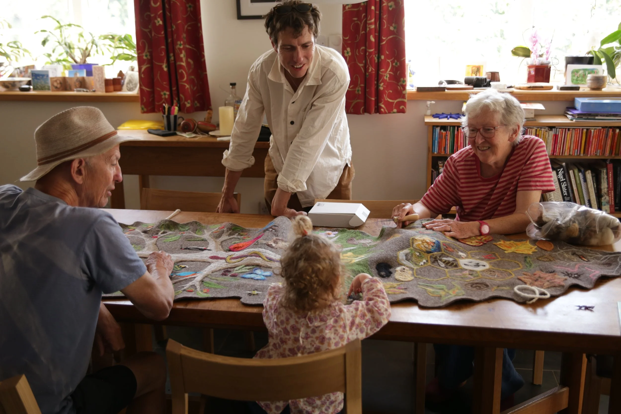 Jill decorating her shroud cover with her granddaughter